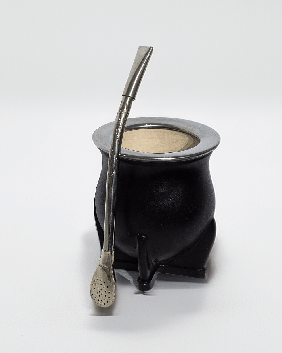 Mate Imperial Cuero Negro Ceramica con Base Bronce